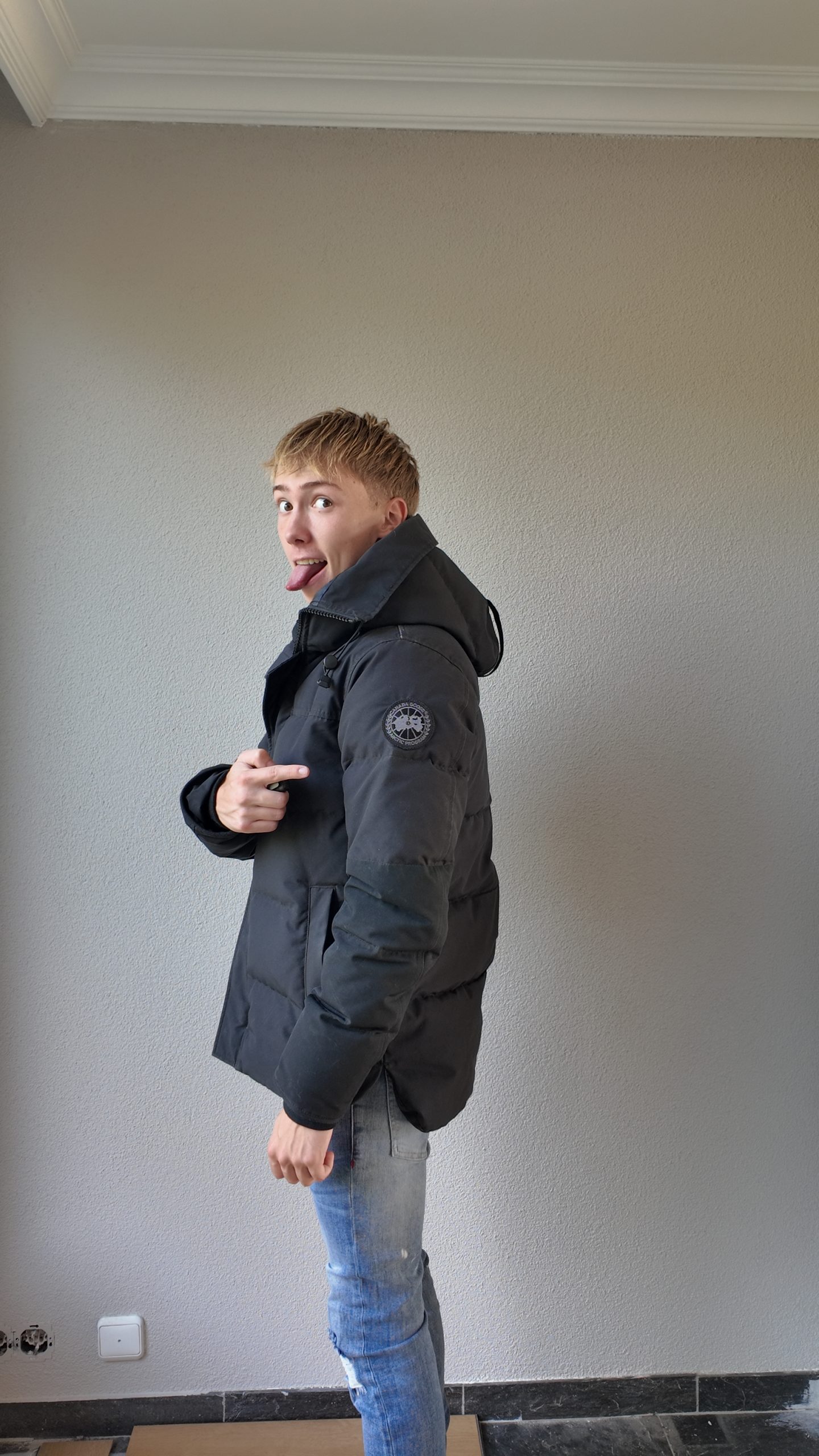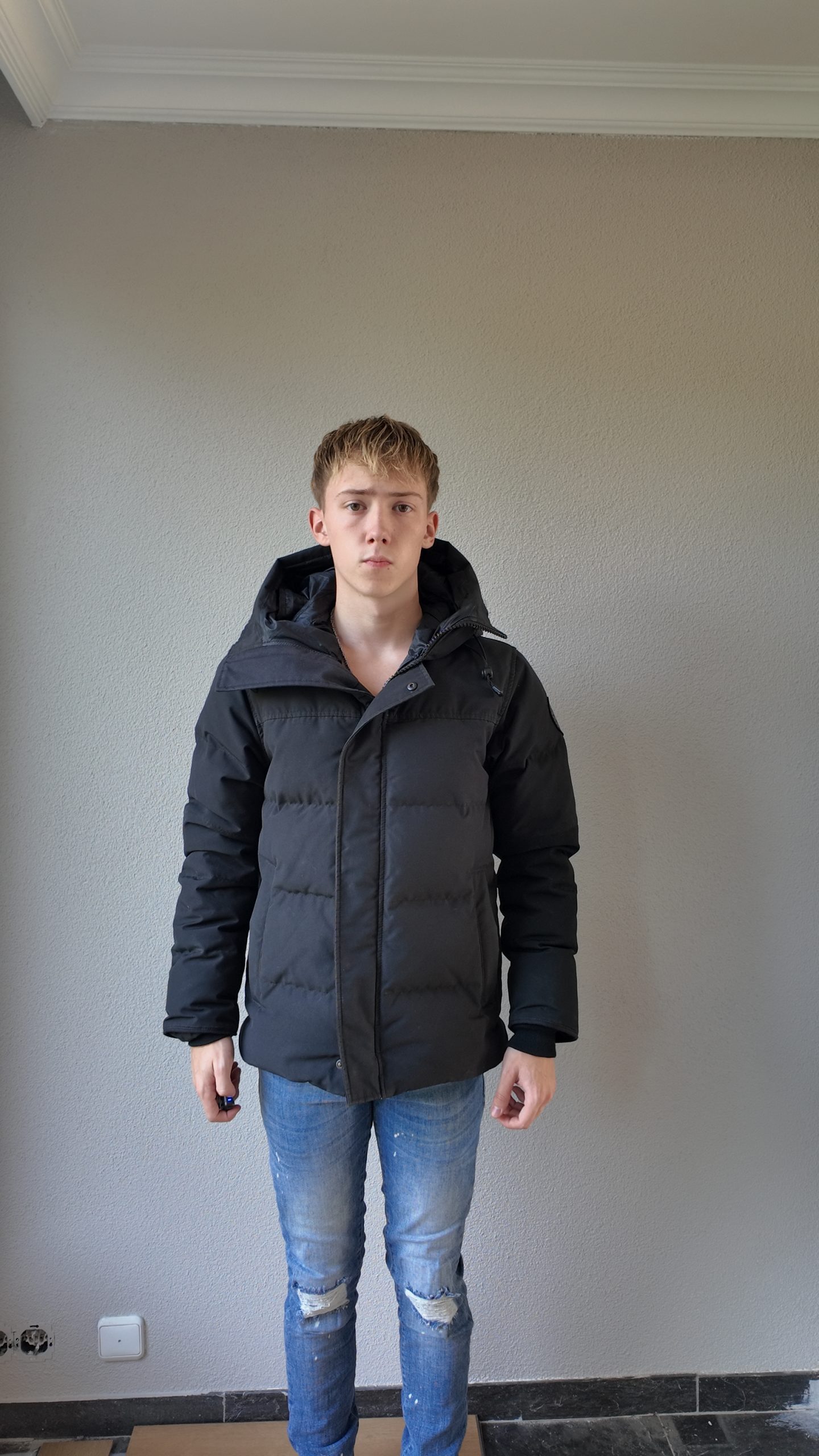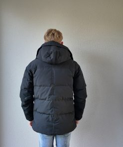 Een zwarte Canada Goose jas met het Black Label, een premium collectie van het merk.